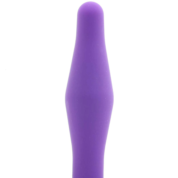 Barely larger than a finger - or possibly smaller, depending on the size of your/your partner's hand - the Flirt slips in with barely a bump. Use lots of lube and go slow if it's your/their first time. Once past the tiny tip, the Flirt swells out gently to its max thickness, which is still very manageable.