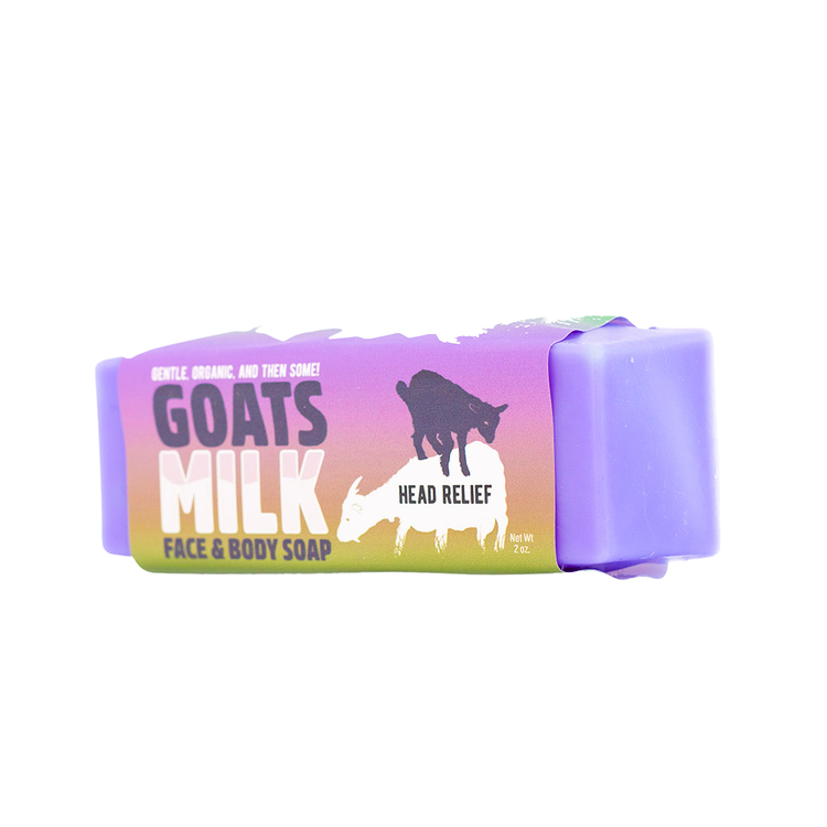 Organic Goats Milk Soap nourishes and hydrates skin with all natural ingredients. Head Relief helps relieve congestion with an aroma of citrus and spice from peppermint, clove, and lemon essential oils.