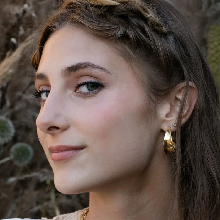 These hoops have an earthy, 70's vibe and an organic form. With a nice weight that isn't too heavy, these are easily paired with both day and nighttime looks.