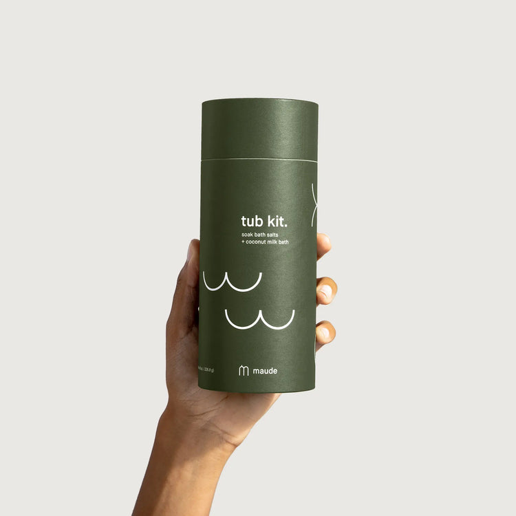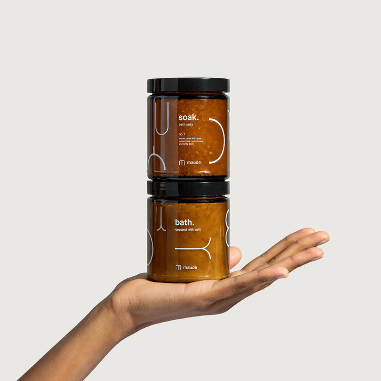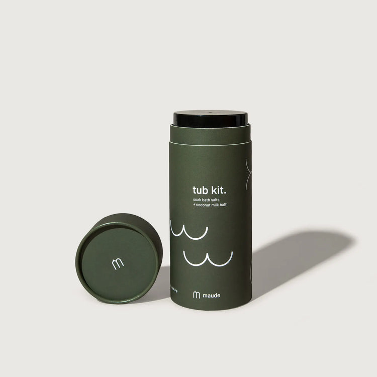 The Tub Kit no. 1 features soak bath salts in warming notes of amber, cedar leaf, lemongrass, tonka bean, and Medjool date, and the coconut milk bath. Made for solo or partner soaks, these hand-harvested blends infuse water with nourishing vitamins and minerals.