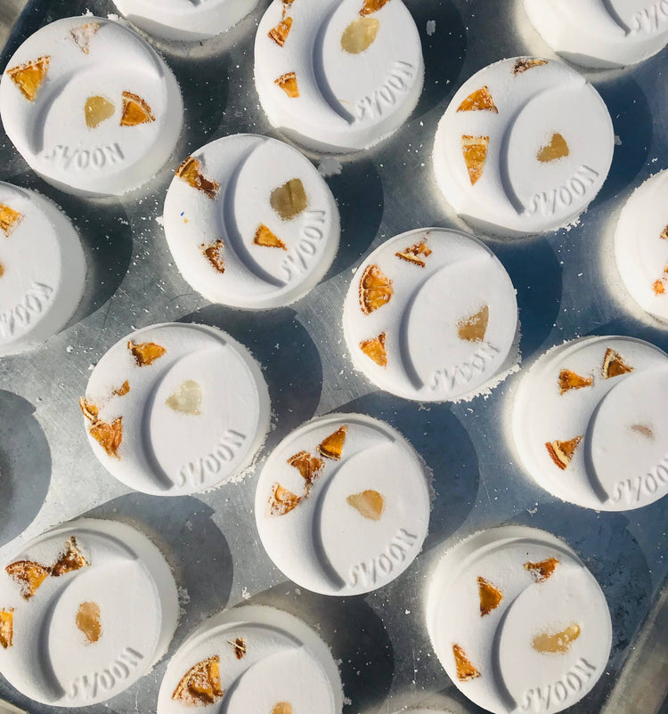 Infused with citrine crystal and a blood orange and bergamot essential oil blend, this classic bath bomb is great for everyday use. Crescent City Swoon bath bombs are created with the bestselling fragrances, limited + organic ingredients, and each and every one is handmade with intention and care.