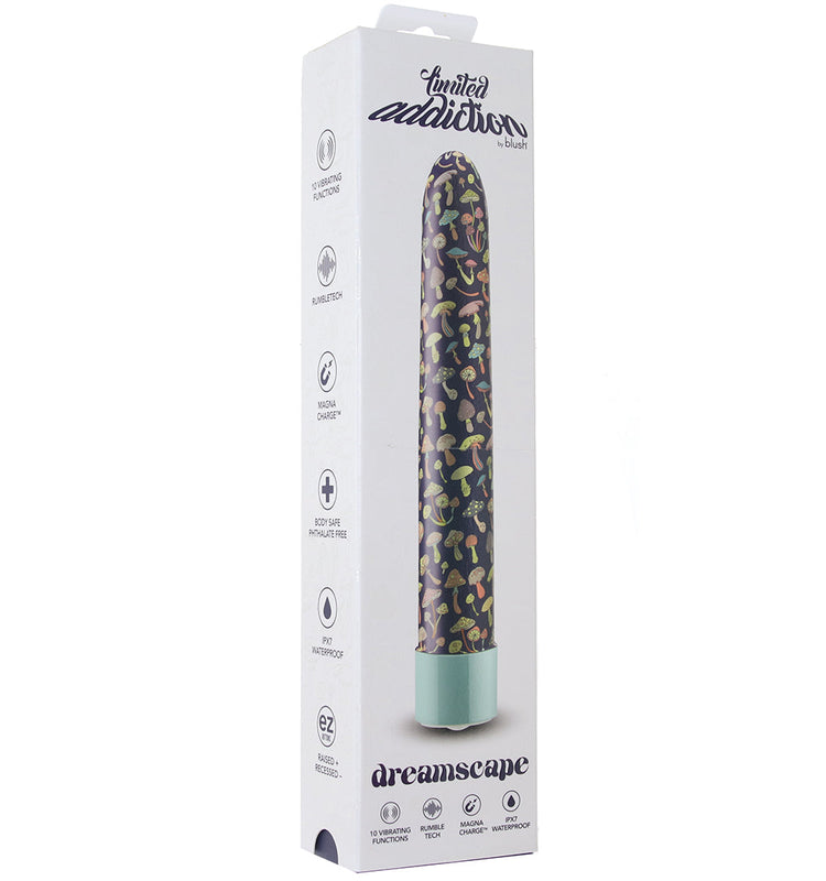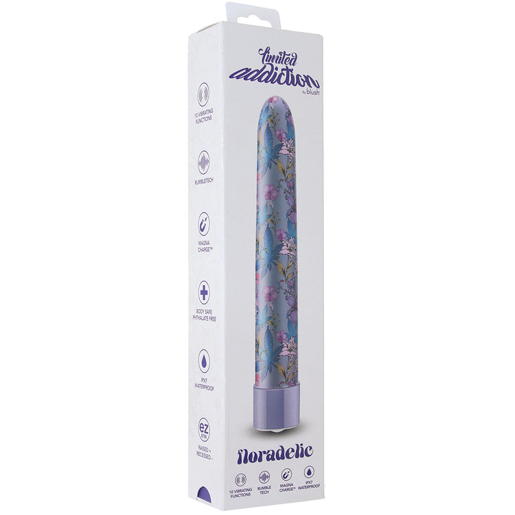 Shape-wise, it doesn't get more classic than Blush's Limited Addiction Vibes. Pattern and power-wise, though? Not so much! Aside from a versatile taper and a nice firm feel, it comes in delightful mushroom or floral prints and features Rumble-Tech stimulation.